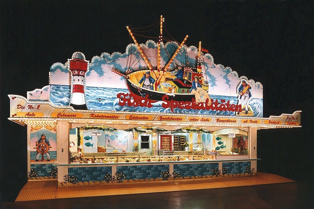 Wir stechen durch unsere Wiedererkennbarkeit heraus; hoher Leuchtturm mit Leuchtfeuer der über dem gesamten Platz sichtbar ist, bewegliches Boot und den plastisch ausgearbeiteten Frontteilen. Bei uns sollte jeder in Genuss von frischen Fischspezialitäten kommen dürfen, deshalb sind all unsere Stände barrierefrei und somit auch für Menschen mit mit eingeschränkten Bewegungsmöglichkeiten geeignet.
